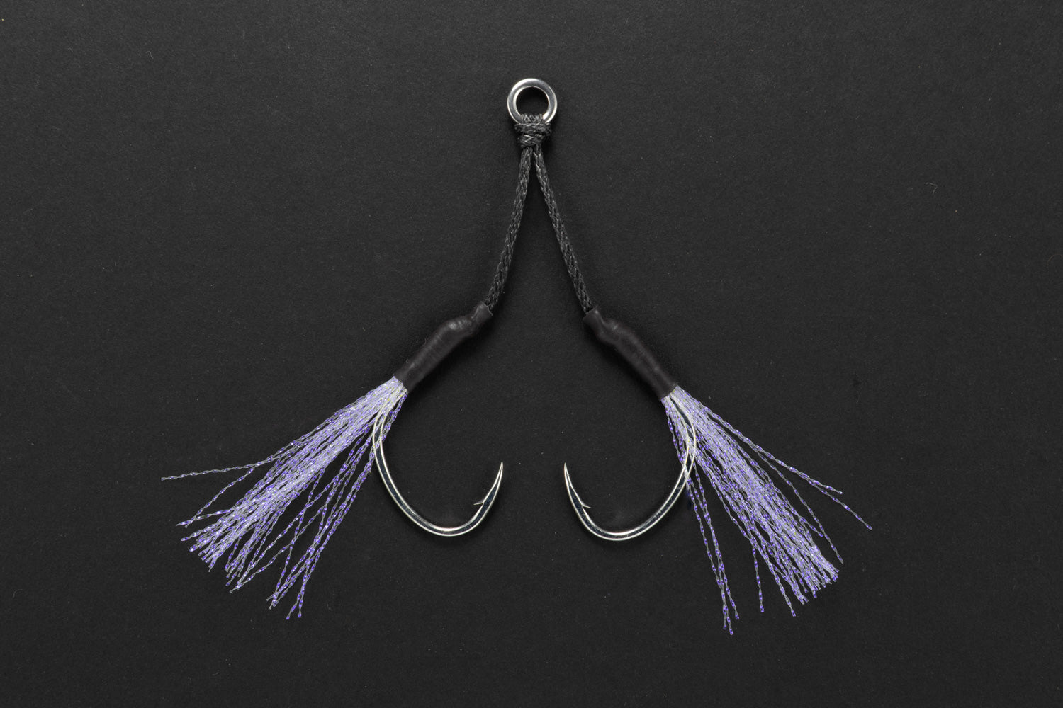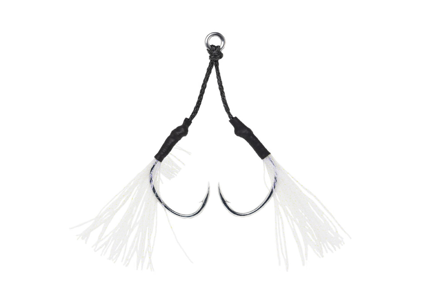 A variation of the popular modern jigging assist hook, the DJ-88 Twin Pike, fitted with flash fibre. The fibre uses a UV-active colour commonly known as ‘keimura,’ which triggers feeding response and helps fish inhale the hook more cleanly. It adds an extra touch of attraction in deep water where light barely reaches, as well as at dawn and dusk. Ideal not only for general pelagic and bottom-fish jigging, but also highly effective for species like hairtail and Spanish mackerel.