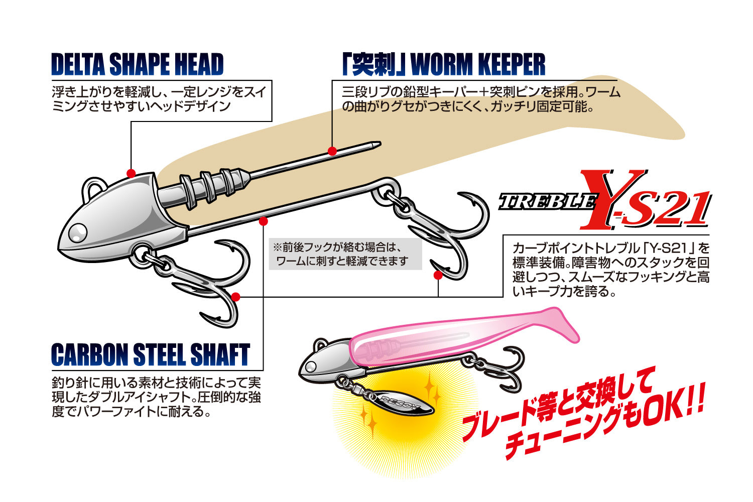 It ditches the usual single hook for a treble, giving you a serious boost in hook-up performance. The straight worm keeper makes rigging soft plastics dead easy, keeping everything straight and swimming right every time.